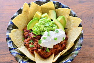 夏の暑い日にぴったり!カラフルで爽やかなメキシカンディップ&チップス・プレート!トルティアチップスにたっぷりのチリコンカン、クリーミーなワカモレ、そしてさわやかなサワークリームをたっぷりつけて、スパイシーメキシカンな料理で夏の味を存分に楽しんでください!