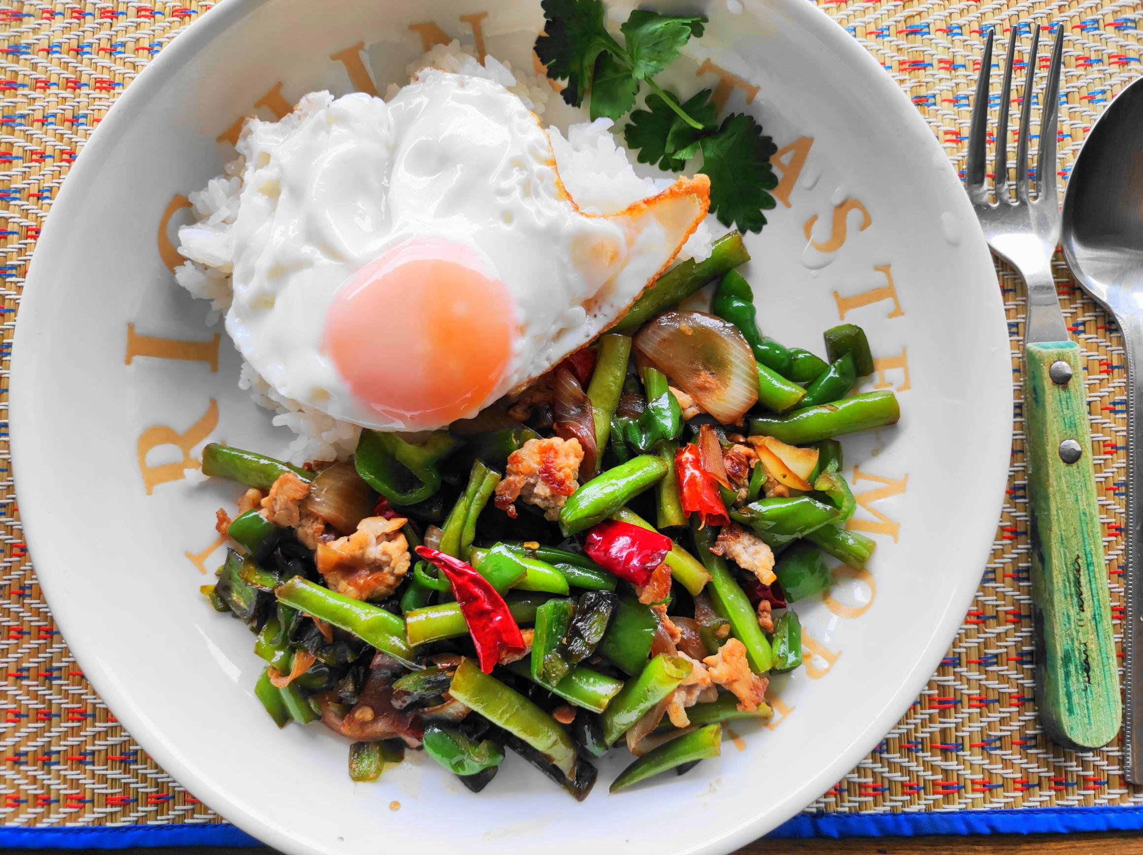 休日のランチに作った「インゲンとピーマンのガパオ風ライス」を紹介します