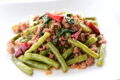 - フライパンにサラダ油大さじ1をひき豆板醬、唐辛子(半分)、花椒(半分)、にんにく(半分)としょうがを入れて弱火で1~2分香りが出るまで炒める