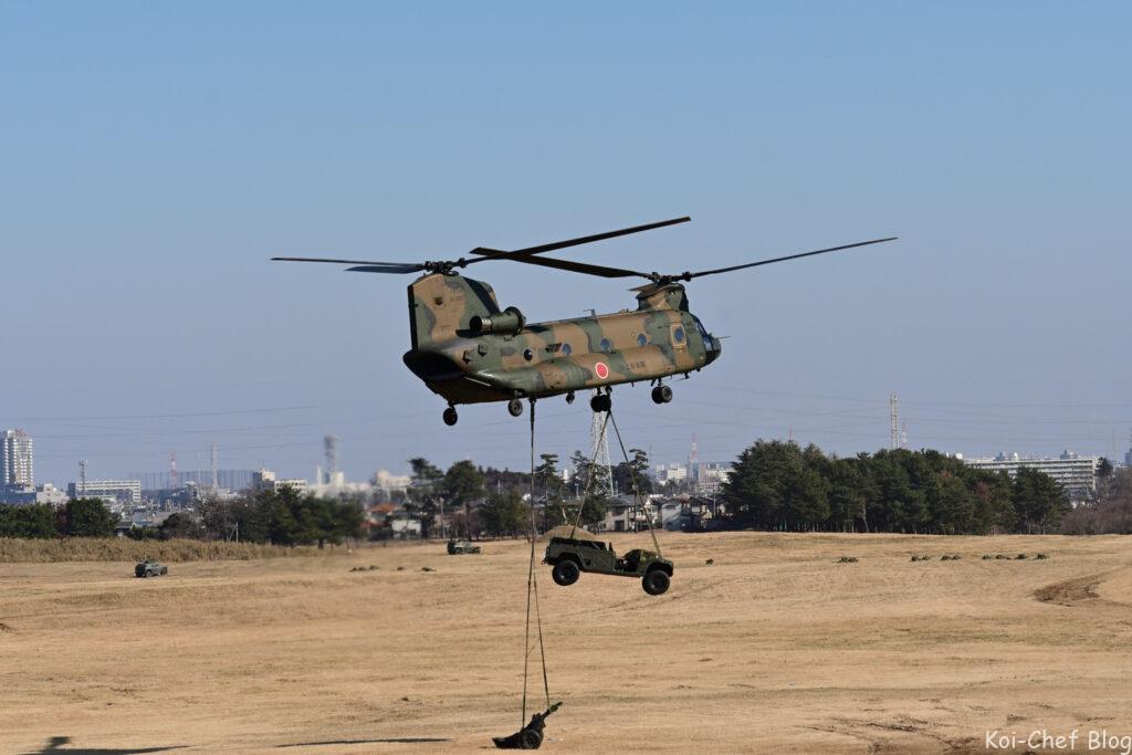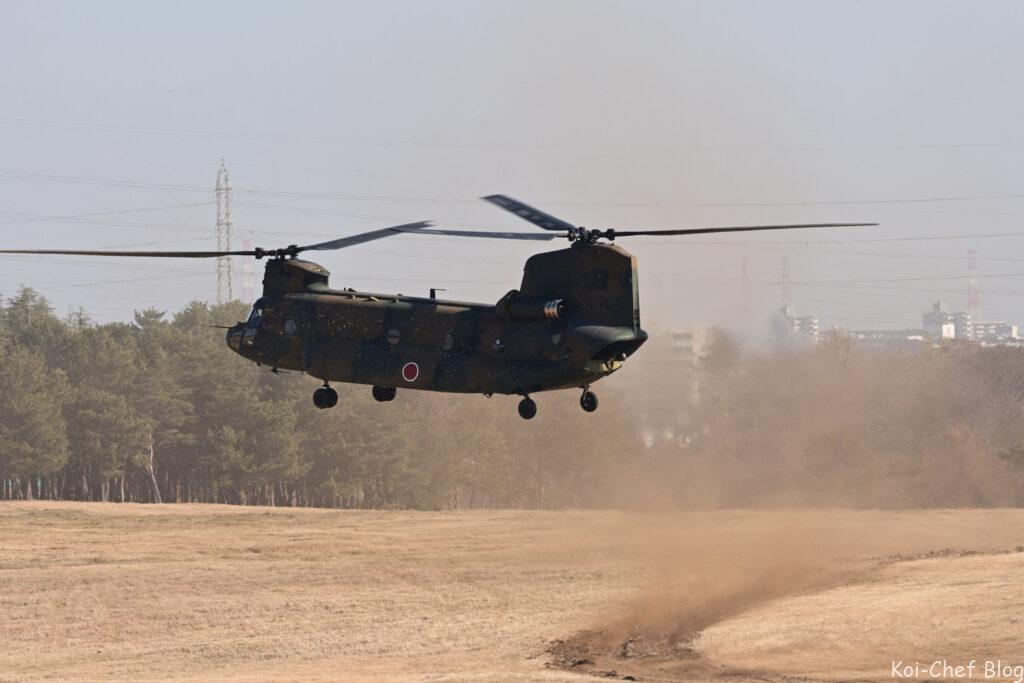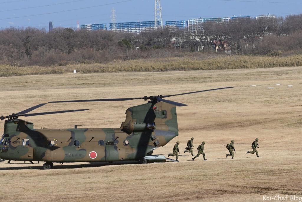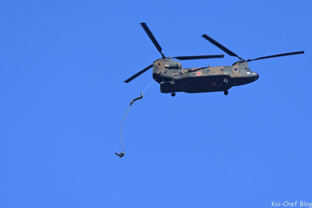 大型輸送ヘリCH-47チヌーク 指揮官による降下