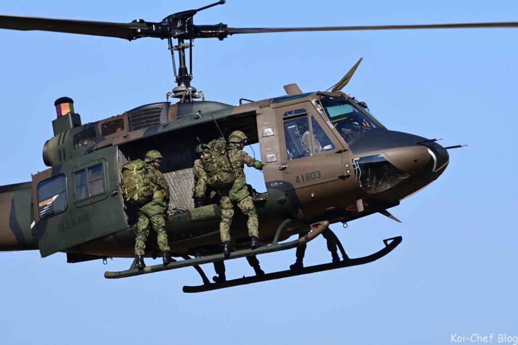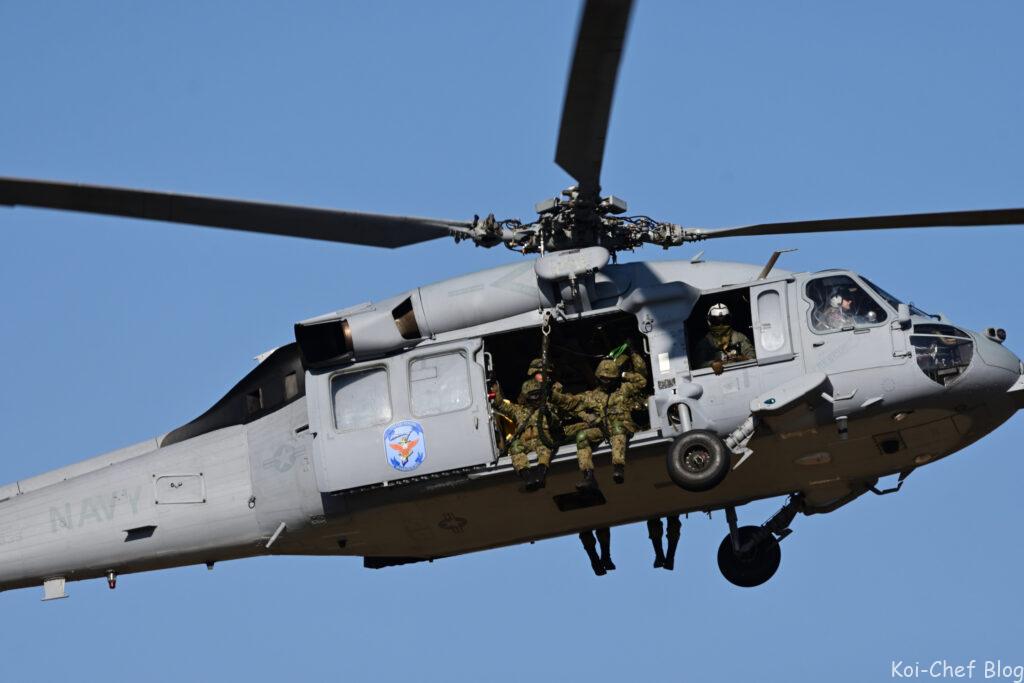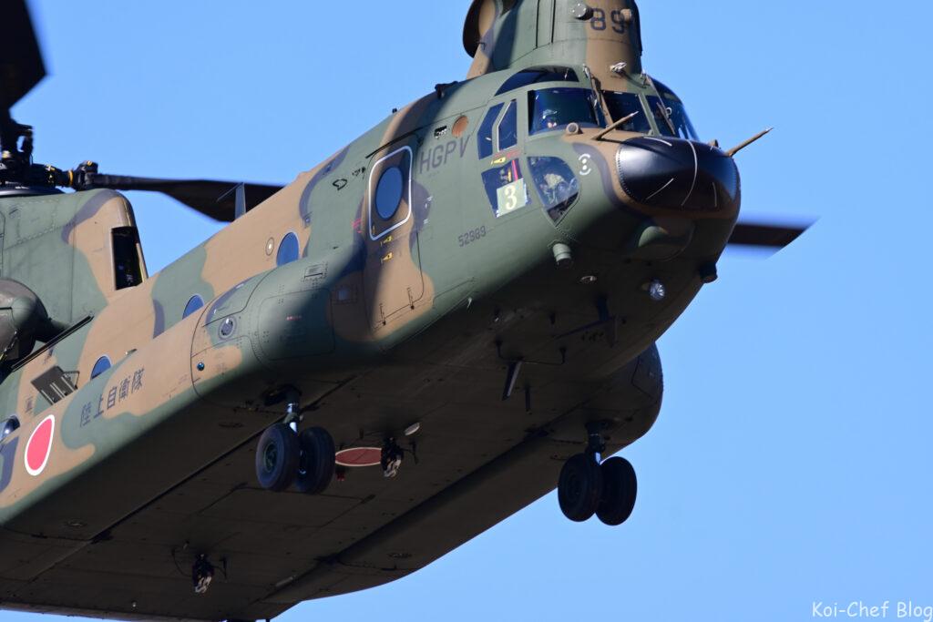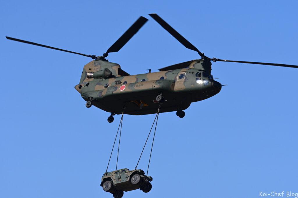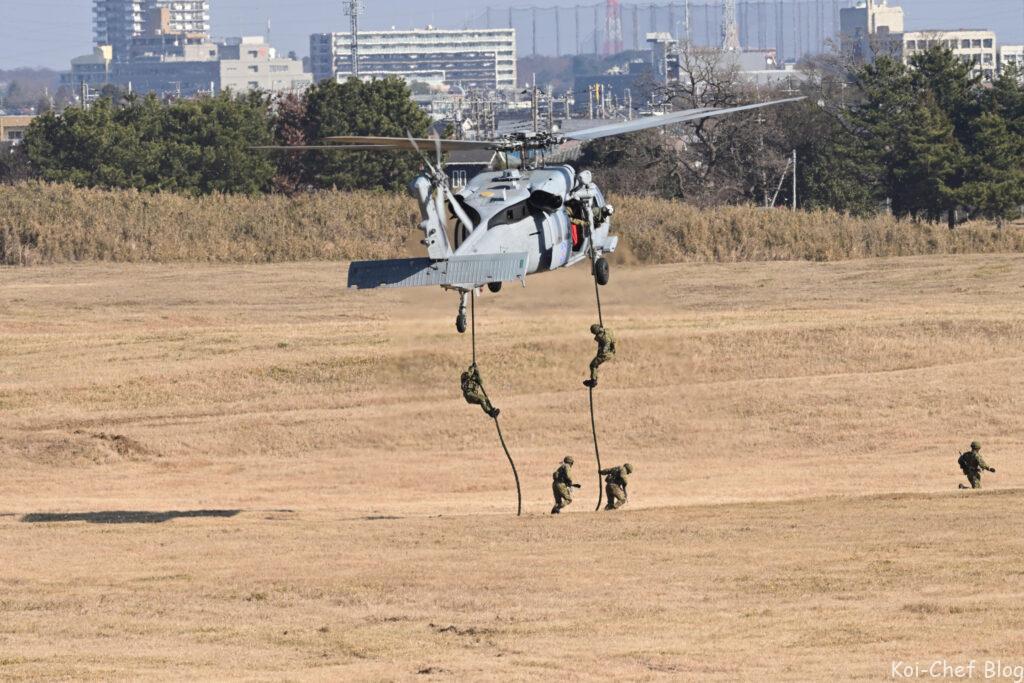 大型輸送ヘリCH-47チヌーク 指揮官による降下
