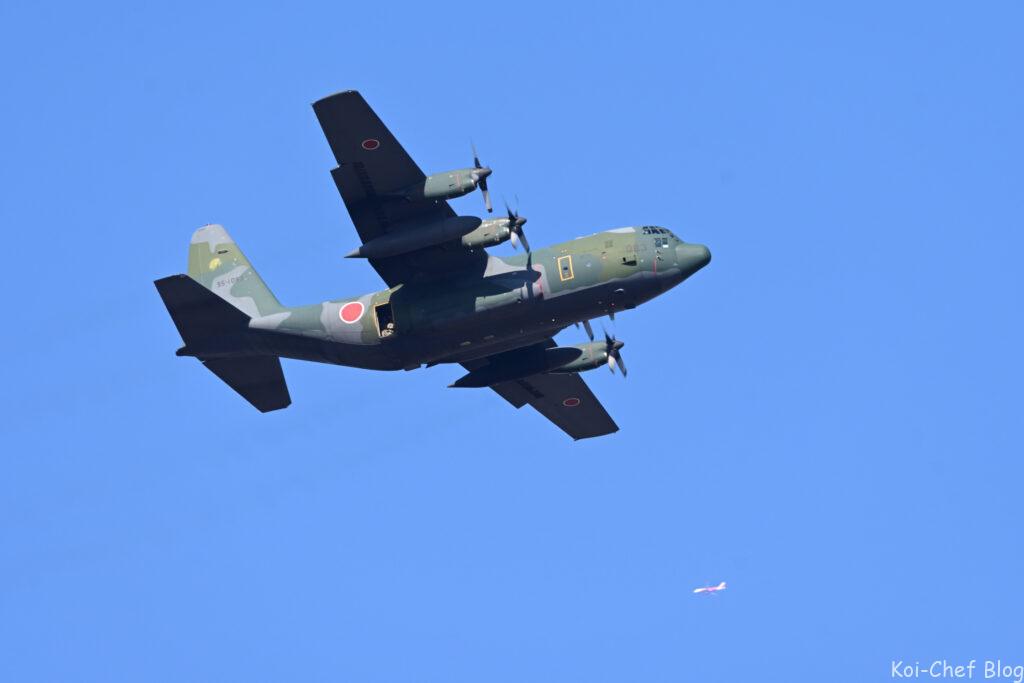 C-130Hと、遠くに見えるのは民間の航空機