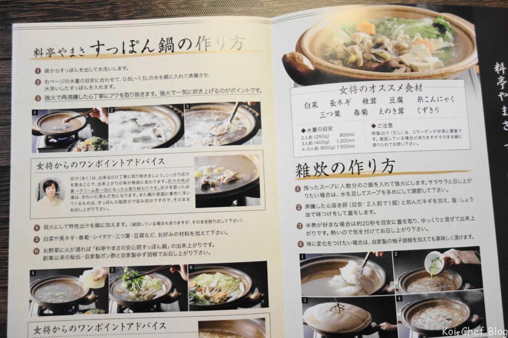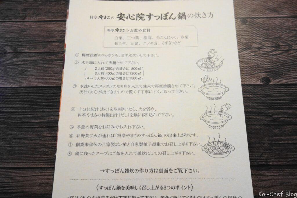 すっぽん鍋の作り方は同梱されている紙に書かれています