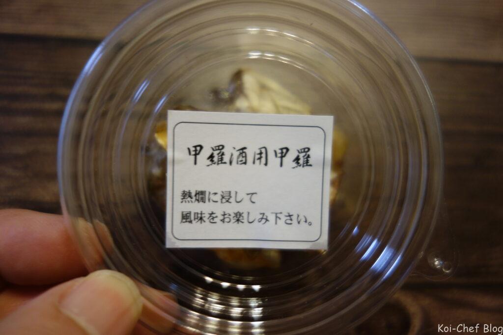 お酒は甲羅酒用甲羅を熱燗に入れて、甲羅酒を楽しみました