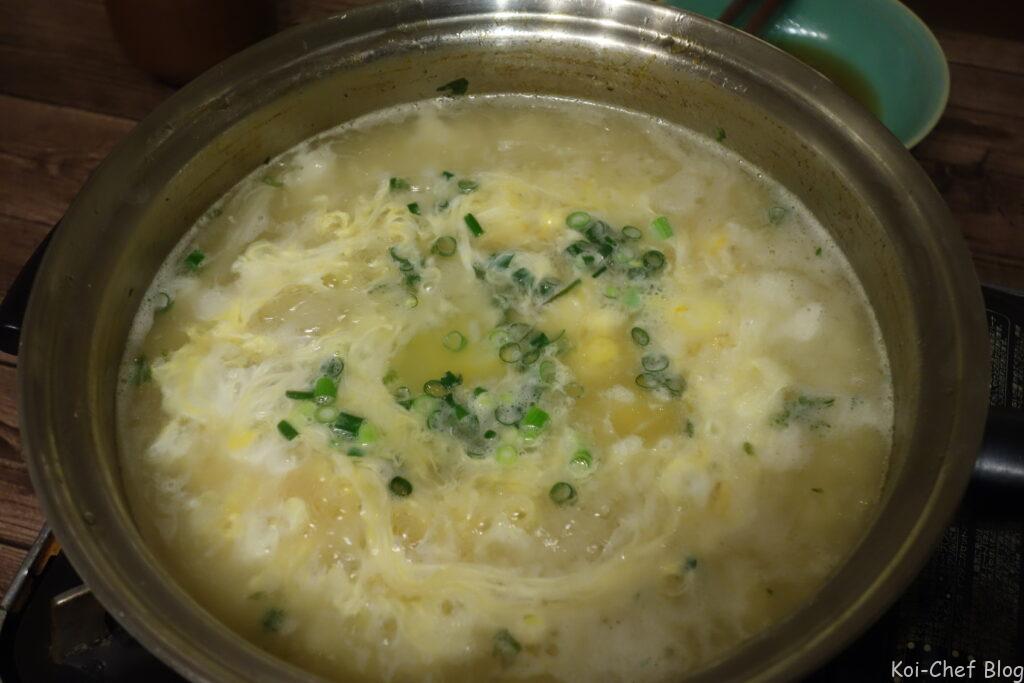 締めは雑炊です。恐らく誰が作っても間違いない美味しさです