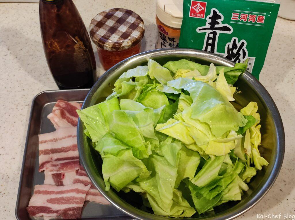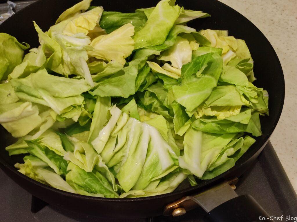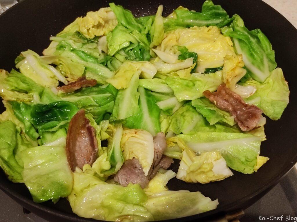 ・豚バラを炒め肉から油を出してその油でキャベツを炒める