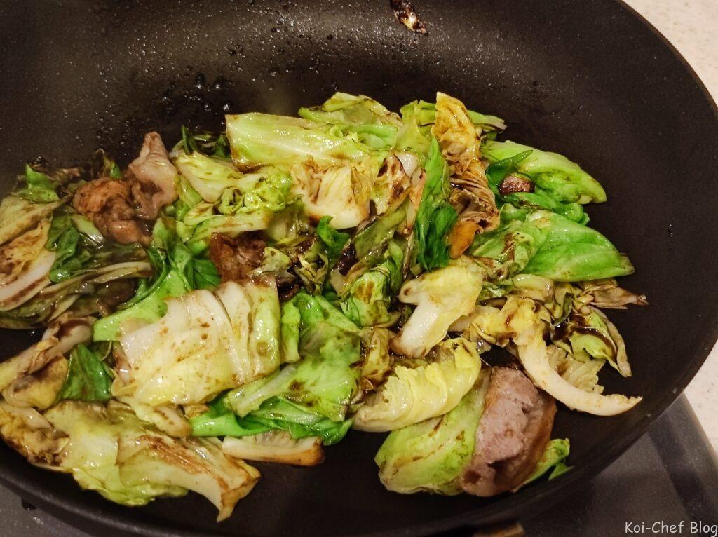 炒めた豚バラの脂身が溶けて(つまりラード)がキャベツを更においしくしてくれるのです