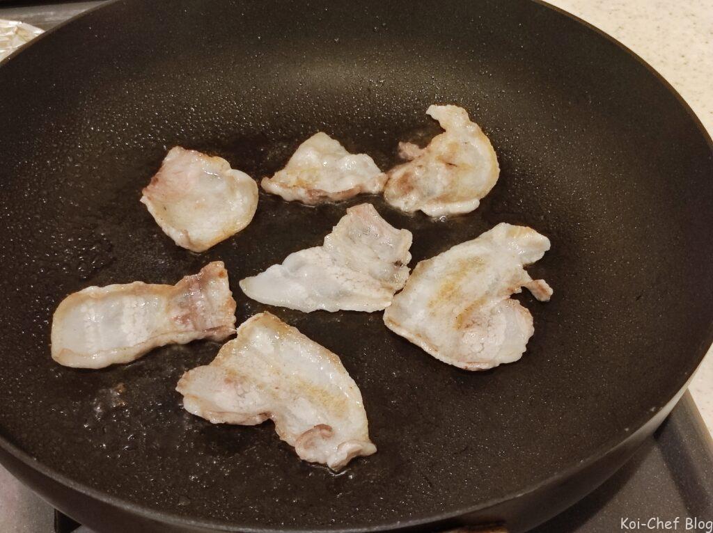 (注:豚バラ肉は油が飛び散る場合があるのでその場合は火を弱める)