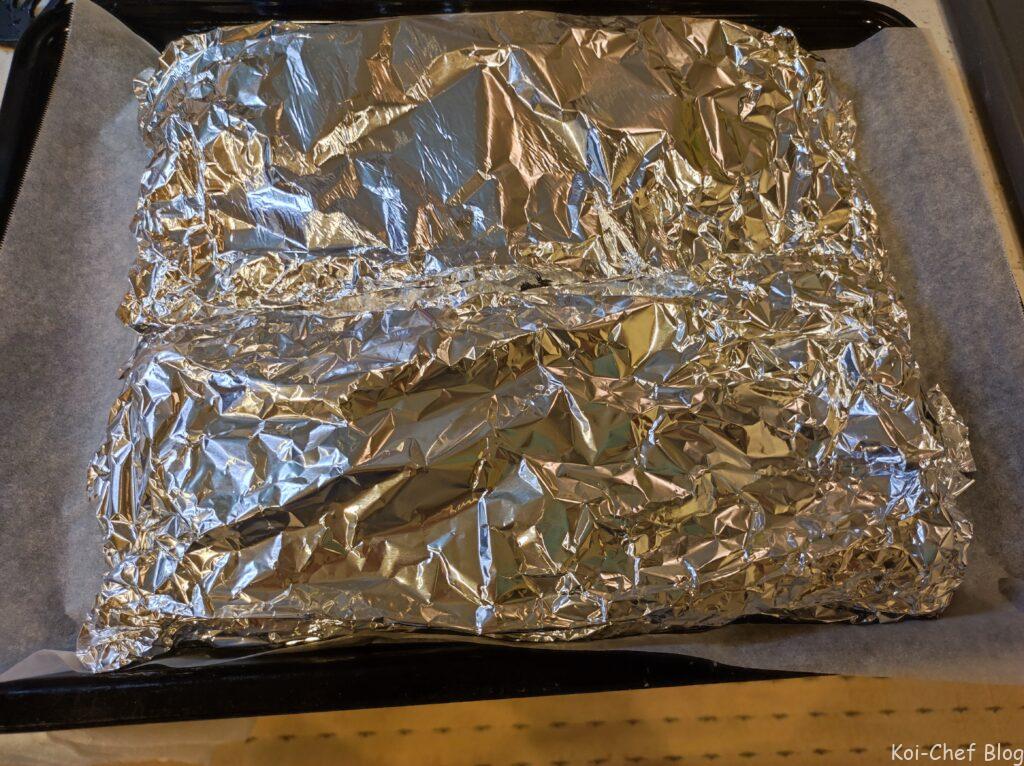 - オーブン皿にクッキングペーパーをしき、250°のオーブンで20~30分程度焼く。※焼き時間はオーブン性能により異なります。分からない場合、途中ホイルのふたを開け、しめじがしんなりしていたらOK。