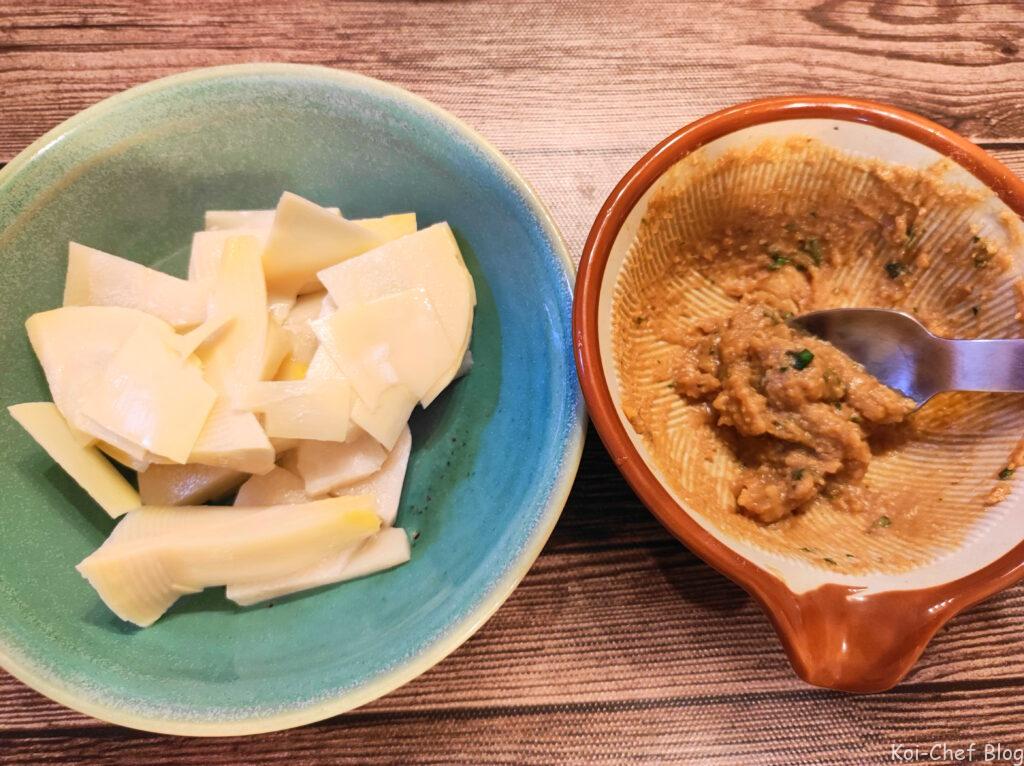 余った竹の子は、2種類の味噌を使った酢味噌和えでいただきました