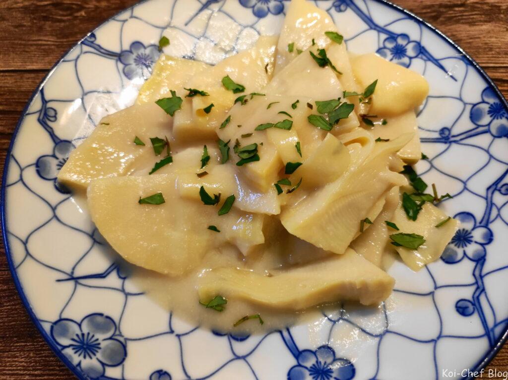 - 別のボウルに竹の子用タレを入れて混ぜてからたけのこを加えて味を絡める