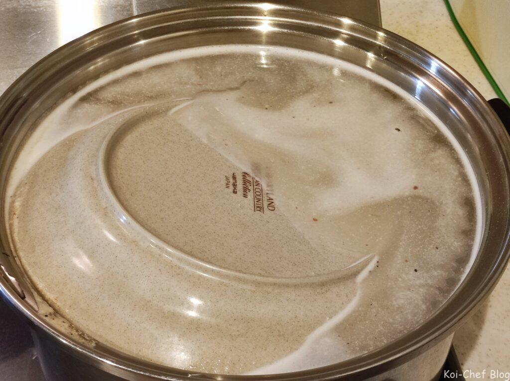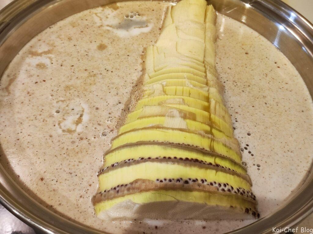 -竹の子が浸かるのに十分なサイズの鍋に湯を沸かしたけのこを入れる