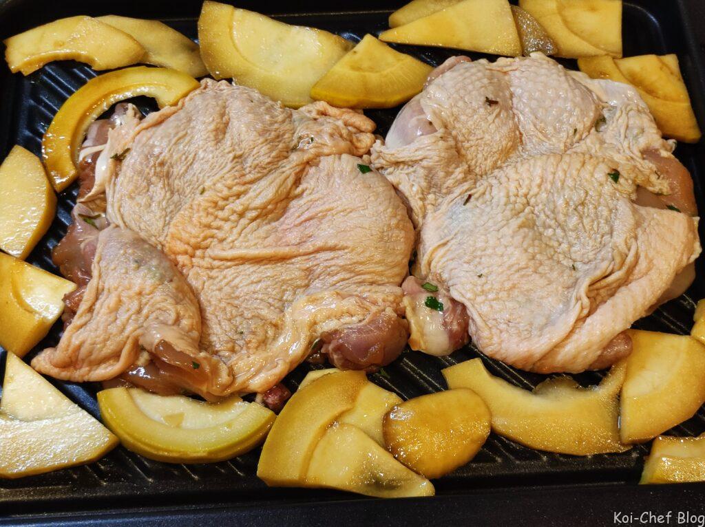 - もも肉は皮と身の厚いところにフォークで穴を数か所あける